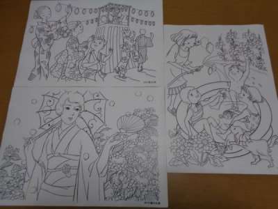 今日は3種類の塗り絵を用意しました