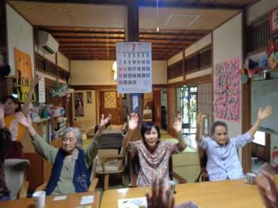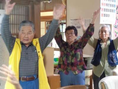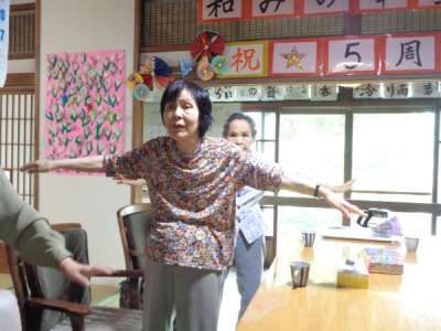 歌謡体操ではTV画面を見ながら歌を口ずさみ