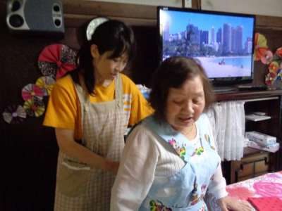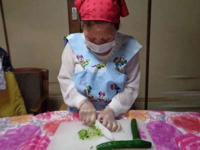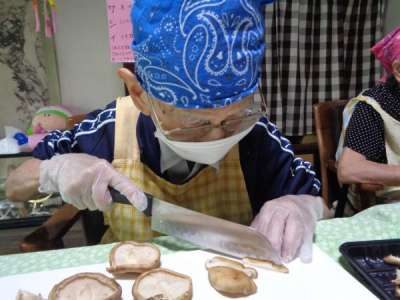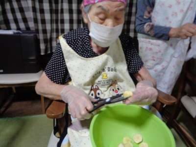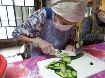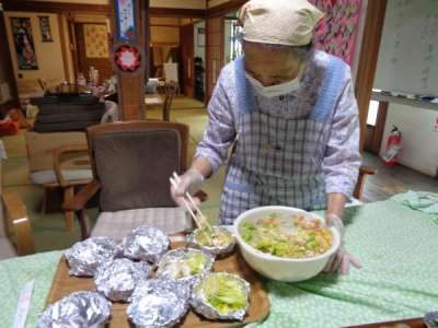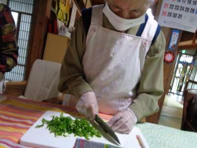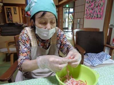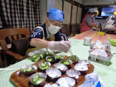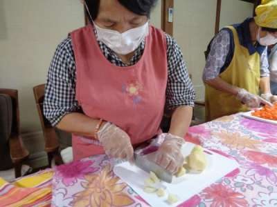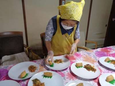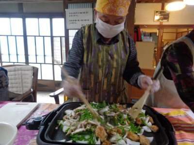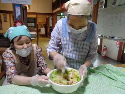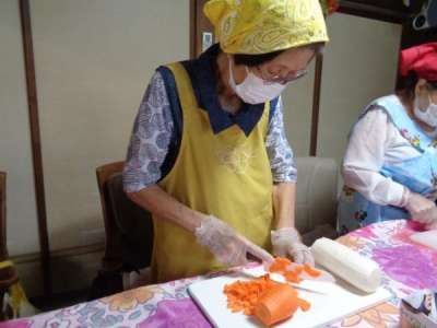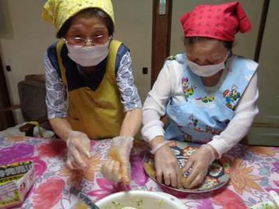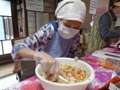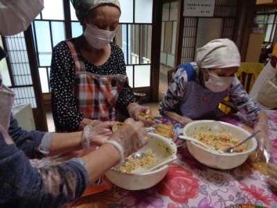 母達が協力してお稲荷さん作り