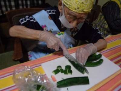 几帳面な父は同じ大きさでキュウリを切っていきます
