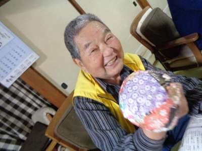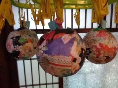 風船にちぎった折り紙をはって乾かしたのがこちら↑↑↑