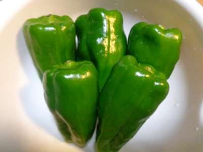先日頂いた立派なピーマンを使って