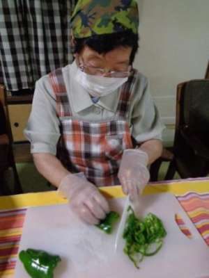 ピーマン炒めの出来上がりー (長音記号2)ー (長音記号2)ー (長音記号2)