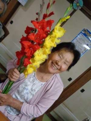 色鮮やかなお花に魅了され、とっても輝く母の姿。