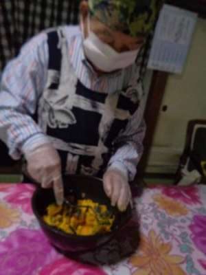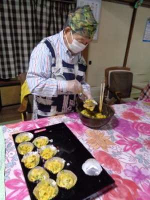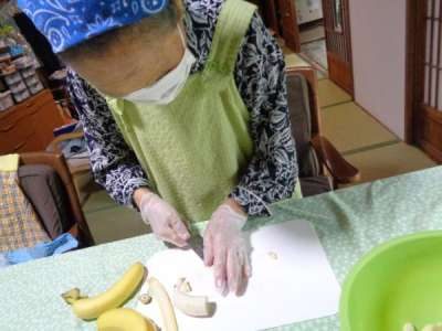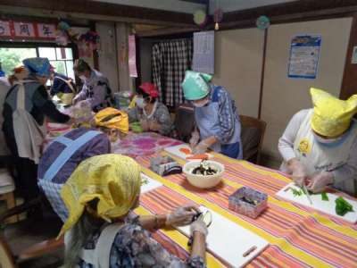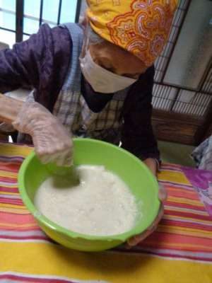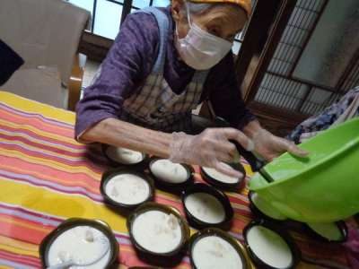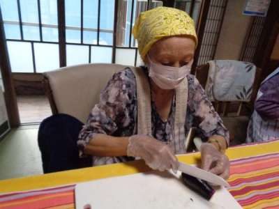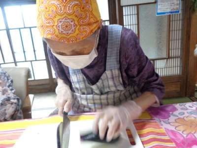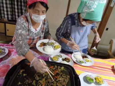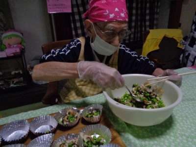 最後の盛り付けも母2人にお任せ