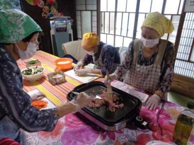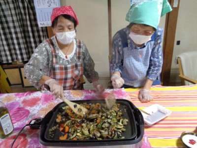 仲良く一緒に炒めていく母達