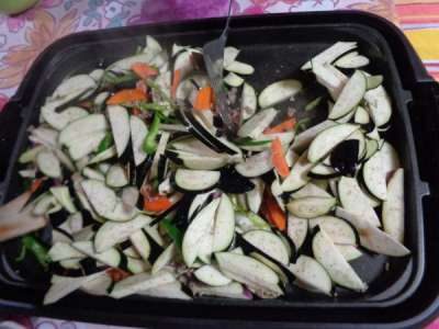 なす・ピーマン・人参を加えていきます