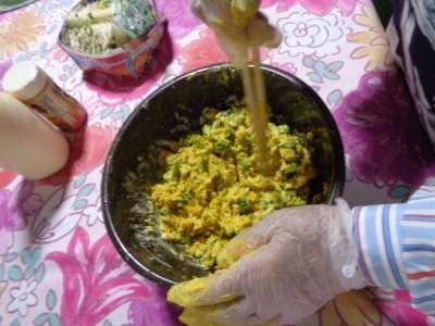 かぼちゃを丁寧に潰し・・・