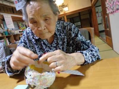 先週風船に折り紙を貼って乾かしたのがこちら↑↑↑
