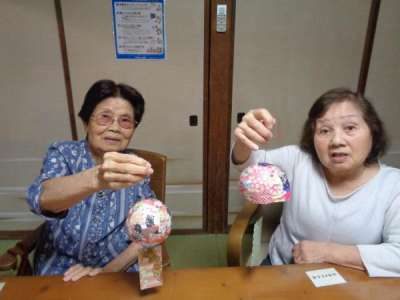 風船に折り紙をはったり