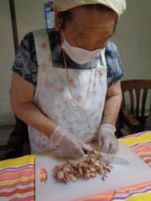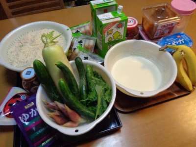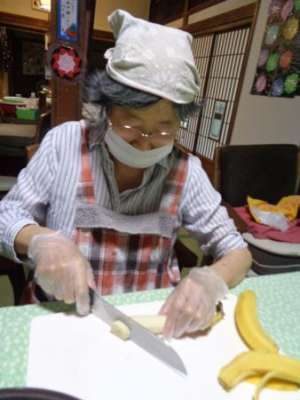 バナナ、野菜など輪切りに、千切り、みじん切りと