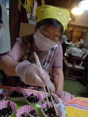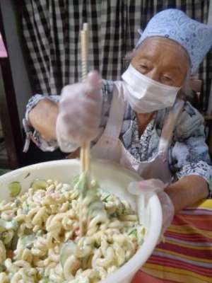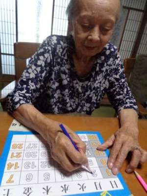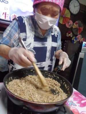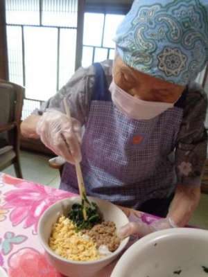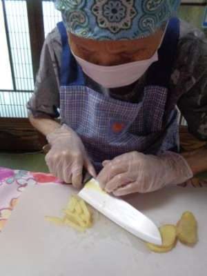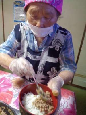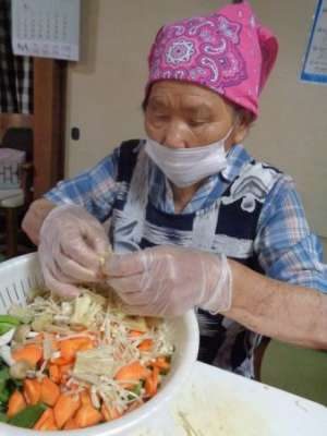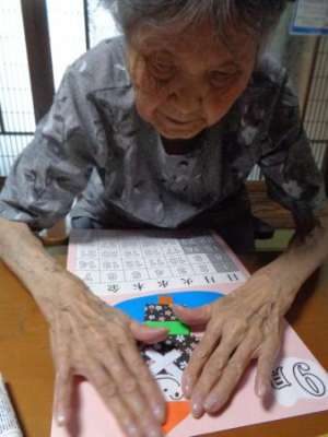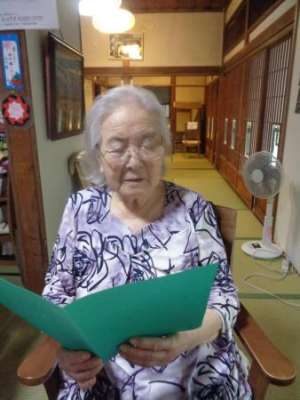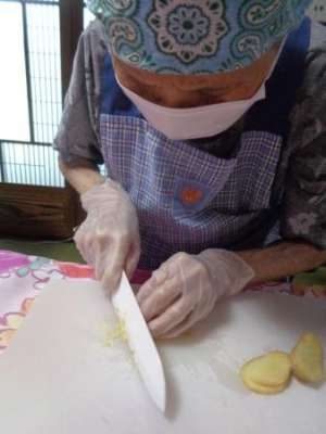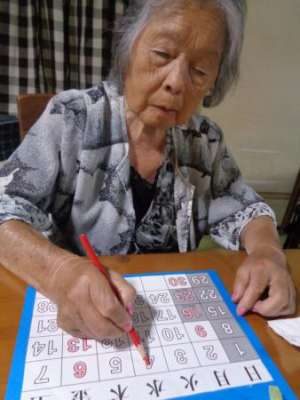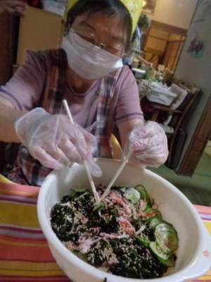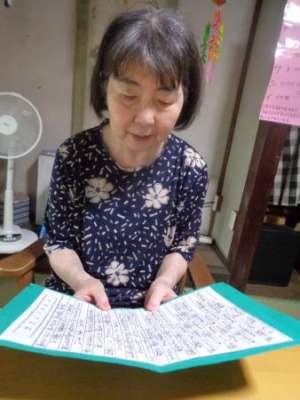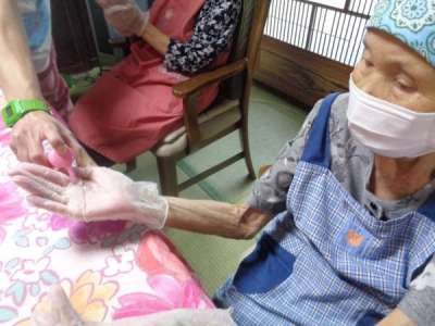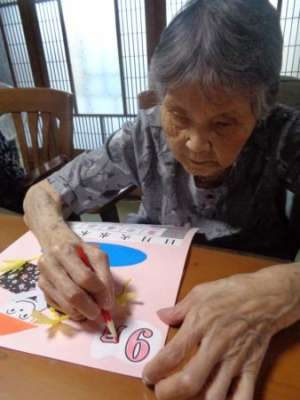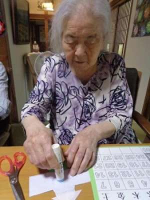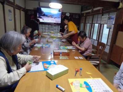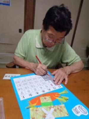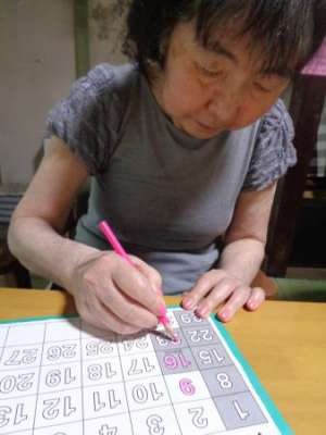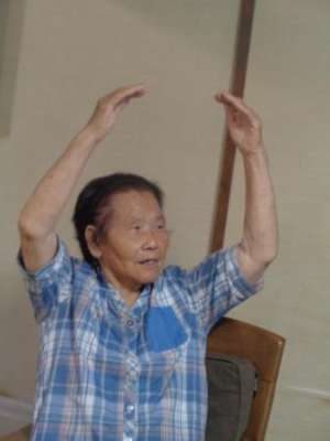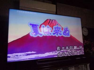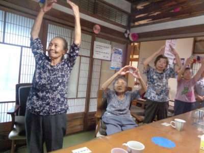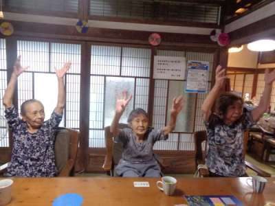 歌謡体操でテレビ画面を見ながら歌を歌いながら