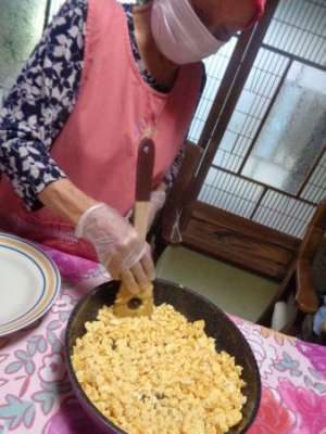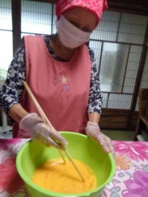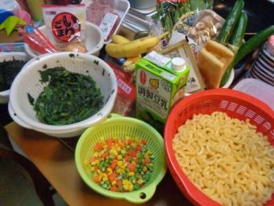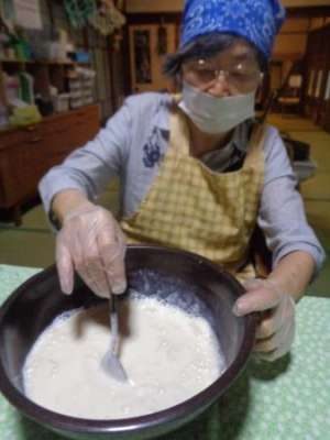 切ったバナナとヨーグルト、豆乳をまぜまぜ