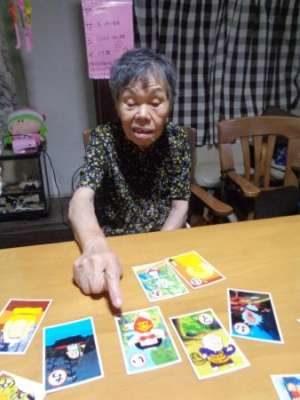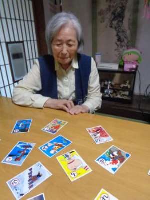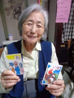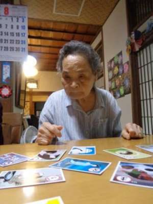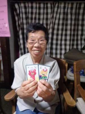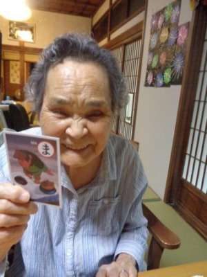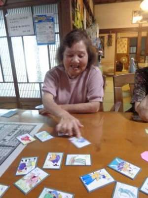 取り手が見つかると笑顔で手を伸ばし札を取ります
