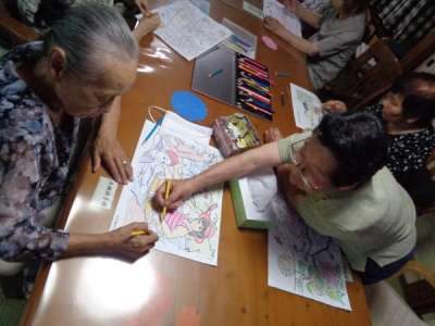 9月のカレンダー作りや前回終わらなかった塗り絵を