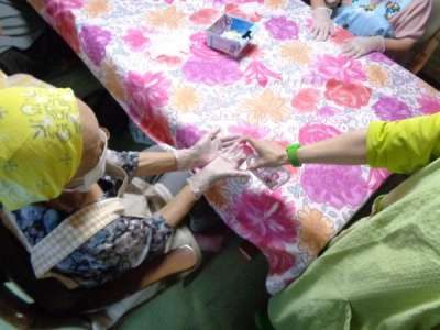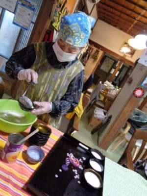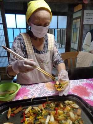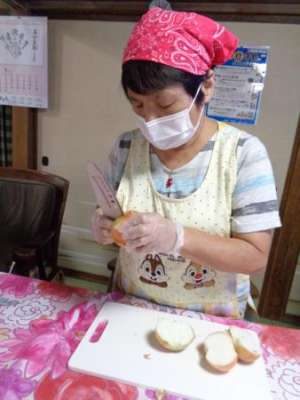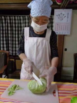 エプロン・三角巾・手袋・マスクで身支度を整え