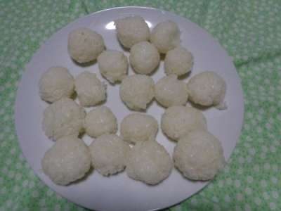 すりつぶした枝豆をもちもちごはん🍚に包んだら完成です