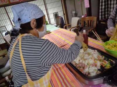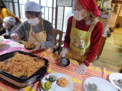 皆さんで協力して切った食材とご飯を炒めていきますグッド (上向き矢印)グッド (上向き矢印)