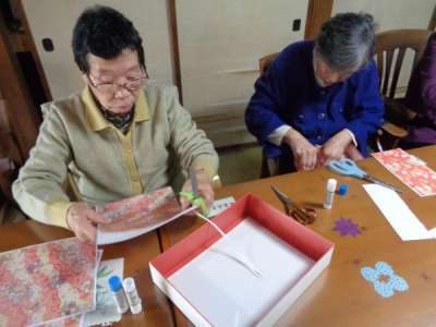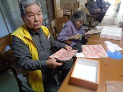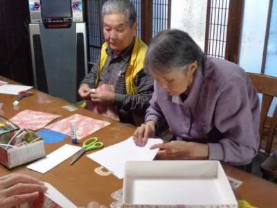 こちらのテーブルでは販売する商品をディスプレイする箱作り