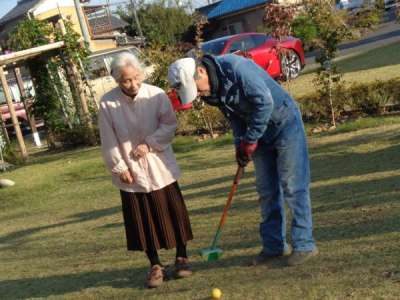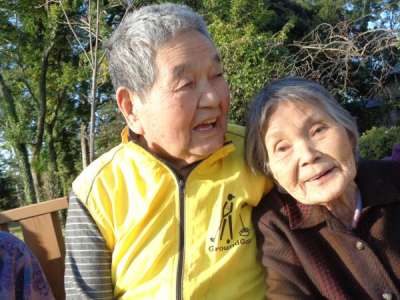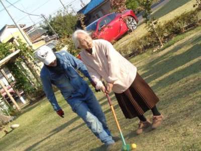 西日も眩しいけど、母や父の笑顔も眩しいですね