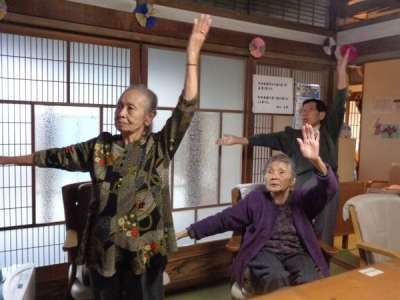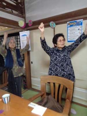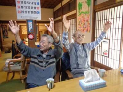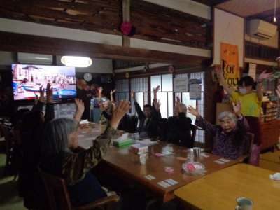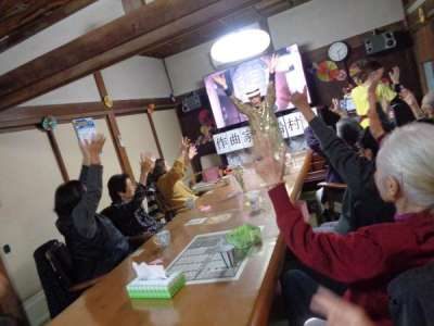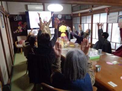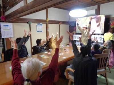 歌謡体操ではTV画面を見ながらテンポよく身体を動かしました
