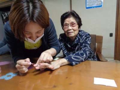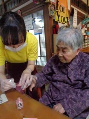 楽しくおしゃべりをしながら・・・爪を切り