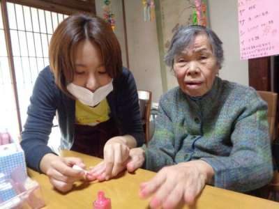 楽しくおしゃべりをしながら・・・ネイル塗り
