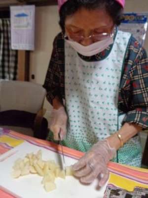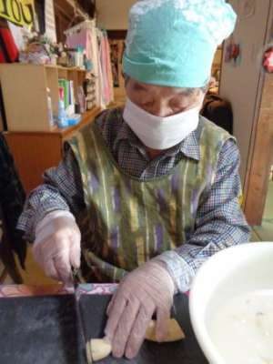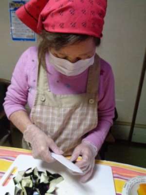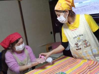 エプロン・三角巾に着替えて