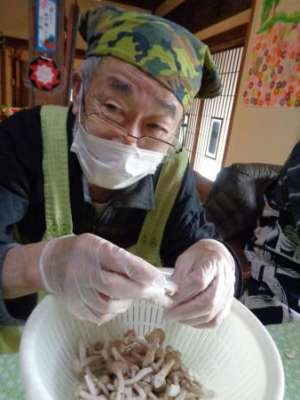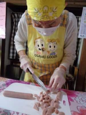 父たちもバナナを切ったり、しめじ・パプリカを