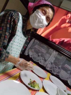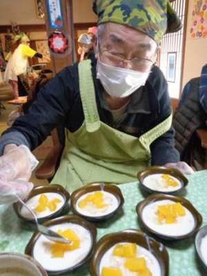 母たちが協力して盛り付け目がハート (顔)