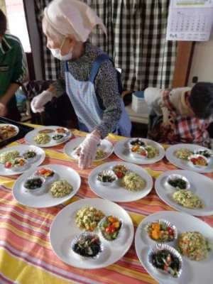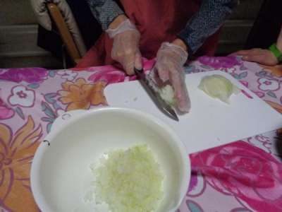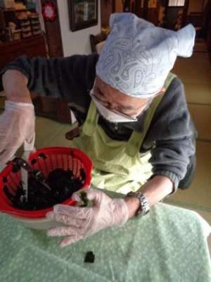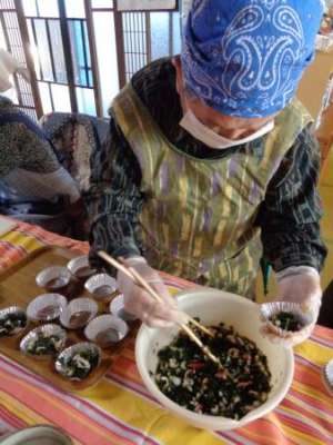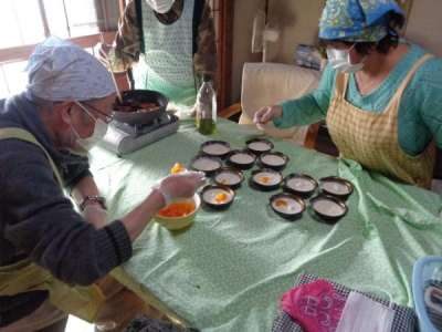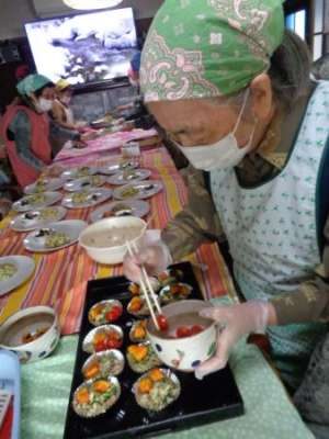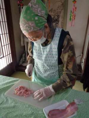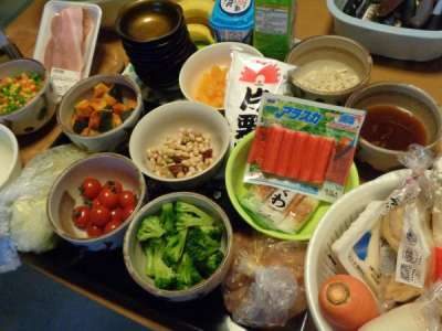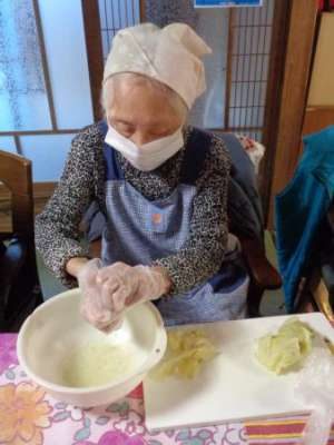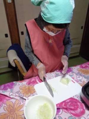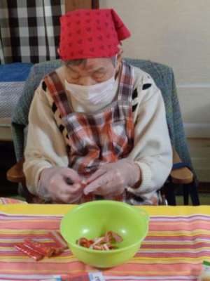 野菜の水気を絞ったり、カニカマも器用に手でさいて・・・