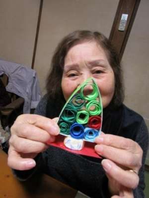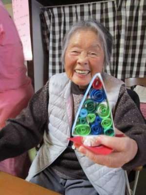 午前レクは前回に引き続きミニクリスマスツリー作りと