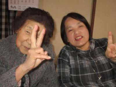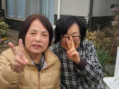 カメラを向けると揃ってピースの母や父