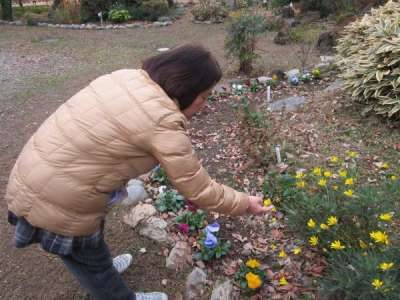 寒い冬に負けず可憐に咲くパンジーに見惚れる母や父