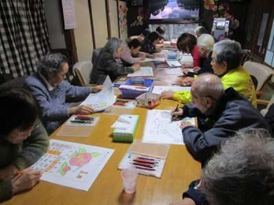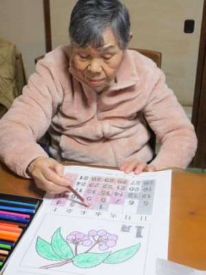 塗り絵の時間になると真剣モードに入る皆さん