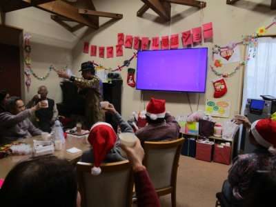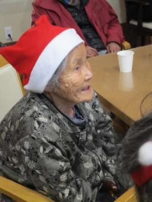 ご来庵された方からサンタの赤い帽子をかぶってパシャリ