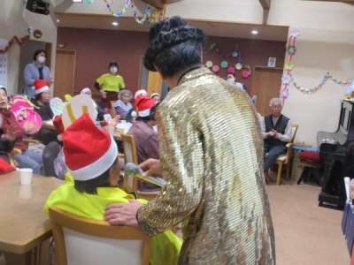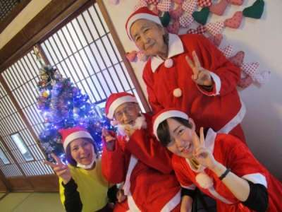帽子だけでなく全身をサンタさんのコスチュームになって