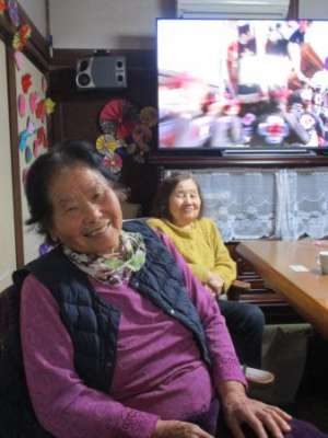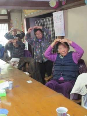 歌謡体操ではテレビ画面を見ながらリズムに合わせて