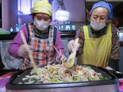 メインのしょうが焼きを仲良く炒めて味付けも母にお任せ