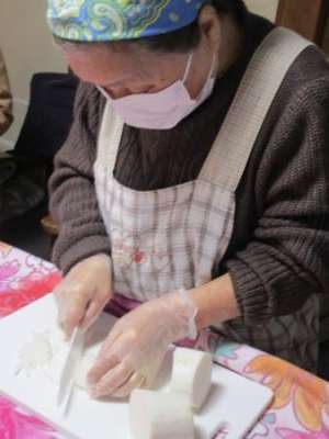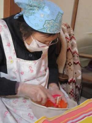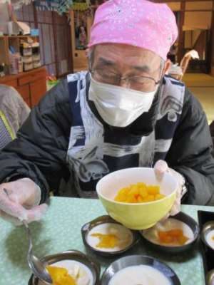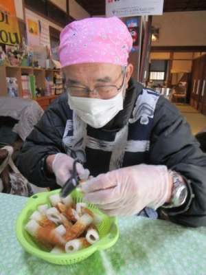 みんな平等に・・・と丁寧に盛り付けをして下さる父