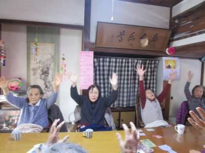 ぼけたらあかんの唱和や合唱、歌謡体操で