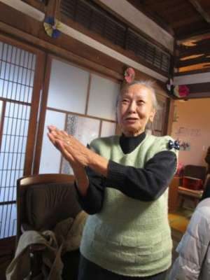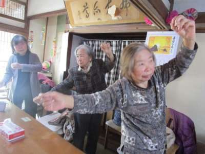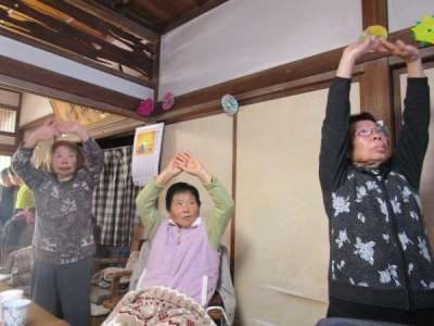 歌謡体操でTV画面を見ながら