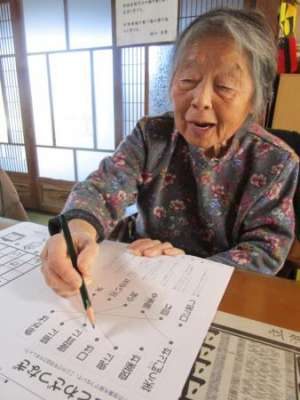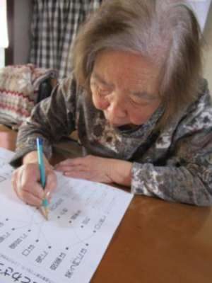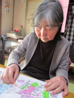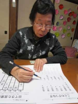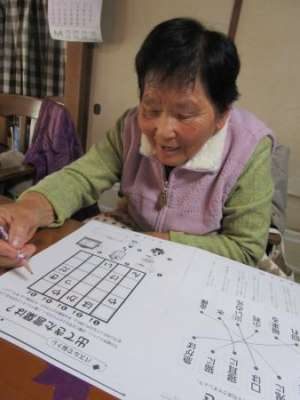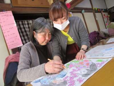 午前のレクは脳トレと塗り絵です