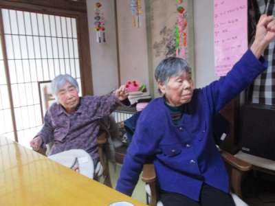 歌謡体操ではテレビ画面を見ながらリズムに合わせて