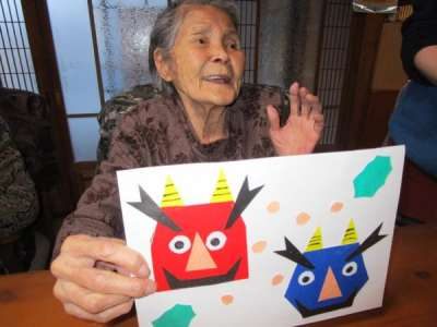 来月の節分にむけて鬼の壁掛けを作っていきましょう