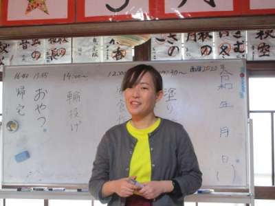 みなみちゃん司会の朝会で本日の日付・予定を確認です