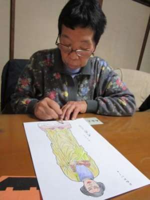 いるのが聖徳太子の塗り絵の展示です