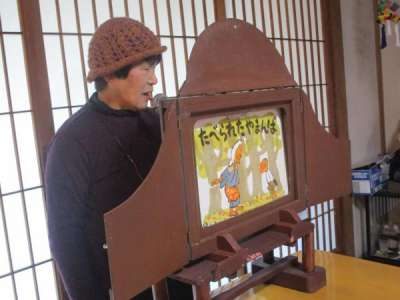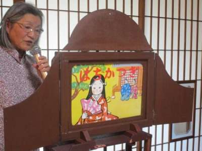 昔懐かしい紙芝居を聞かせてくださるインコさんの登場です