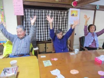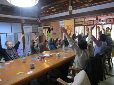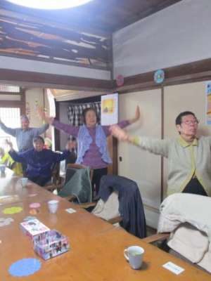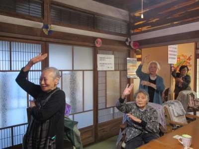 歌謡体操ではテレビ画面を見ながらリズムに合わせて身体を動かしました