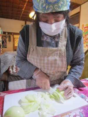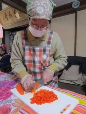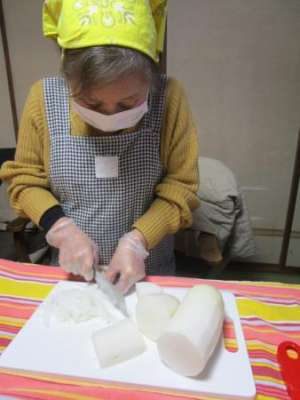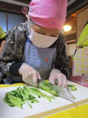 母たちの包丁さばきでスイスイ切っていきます🔪